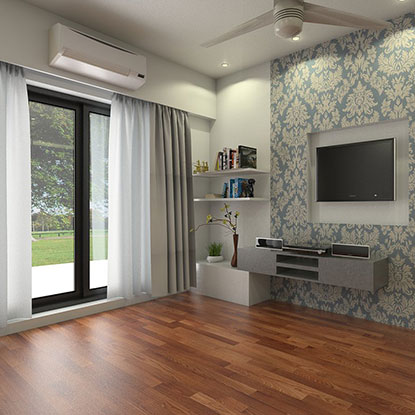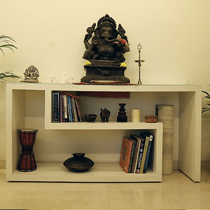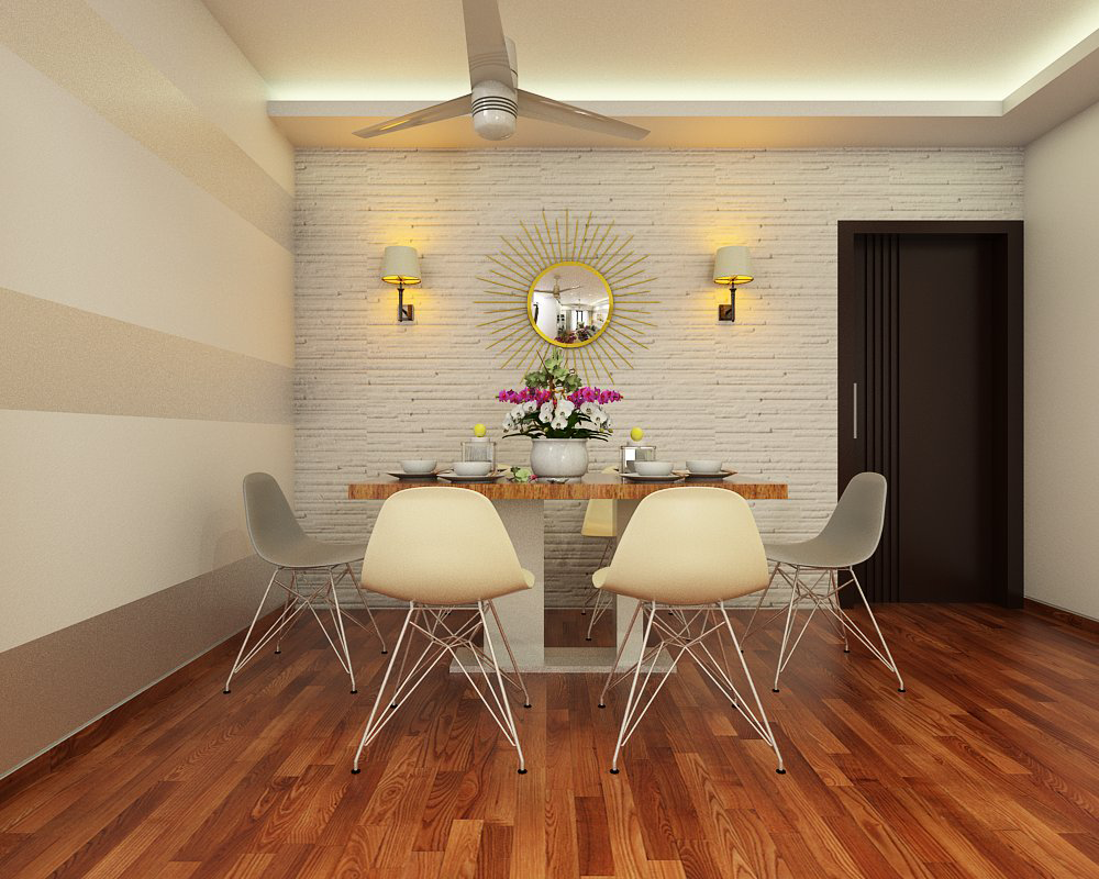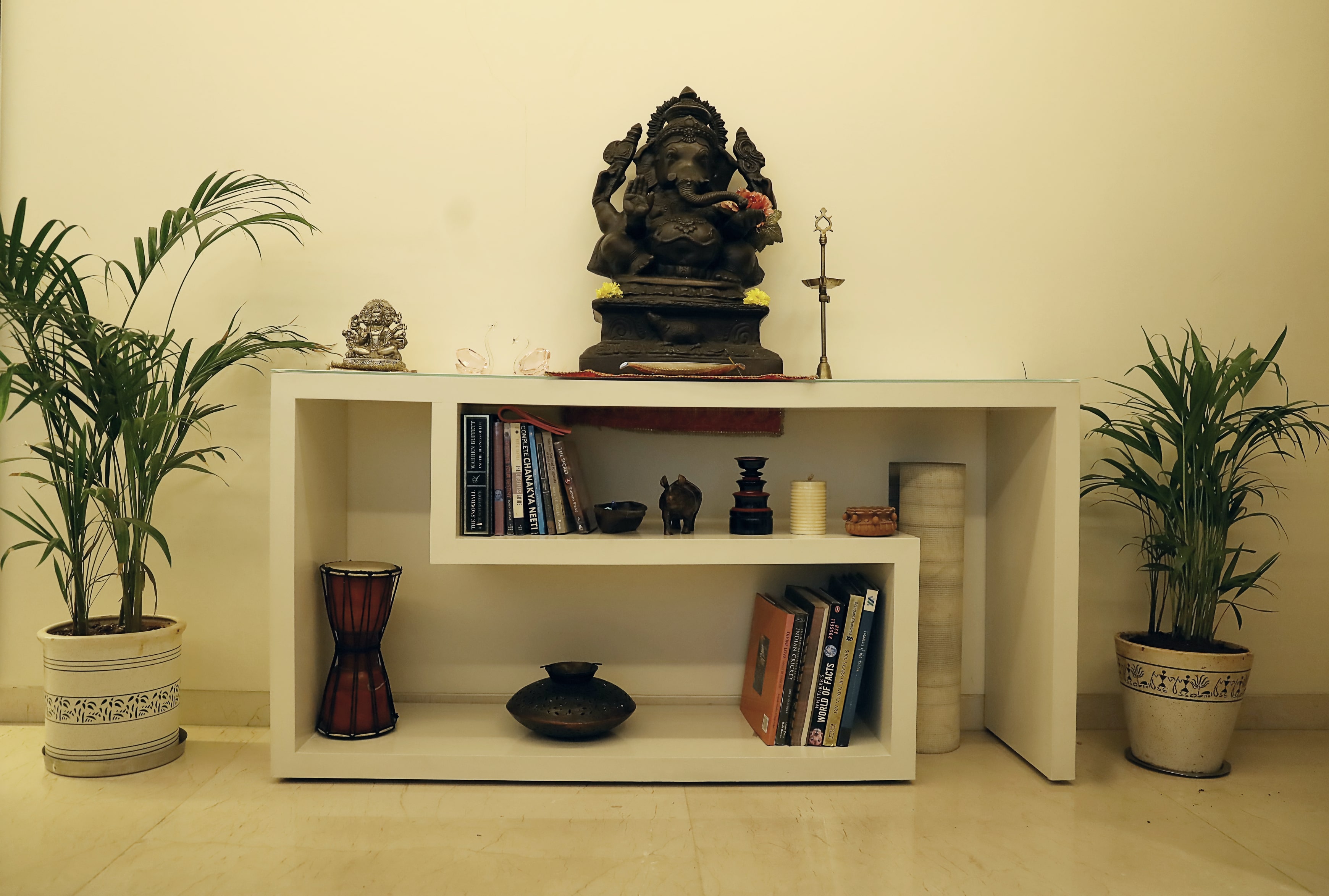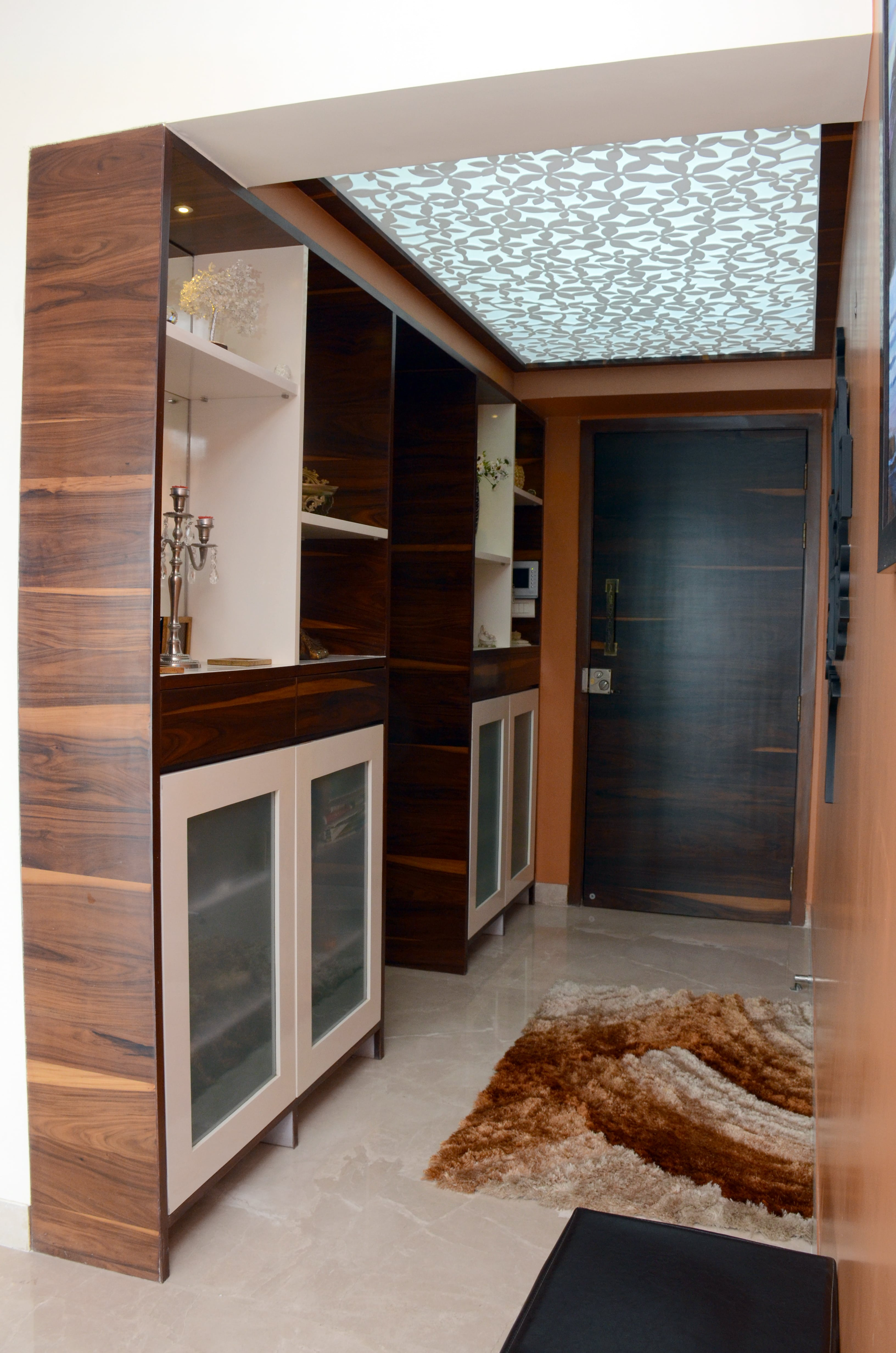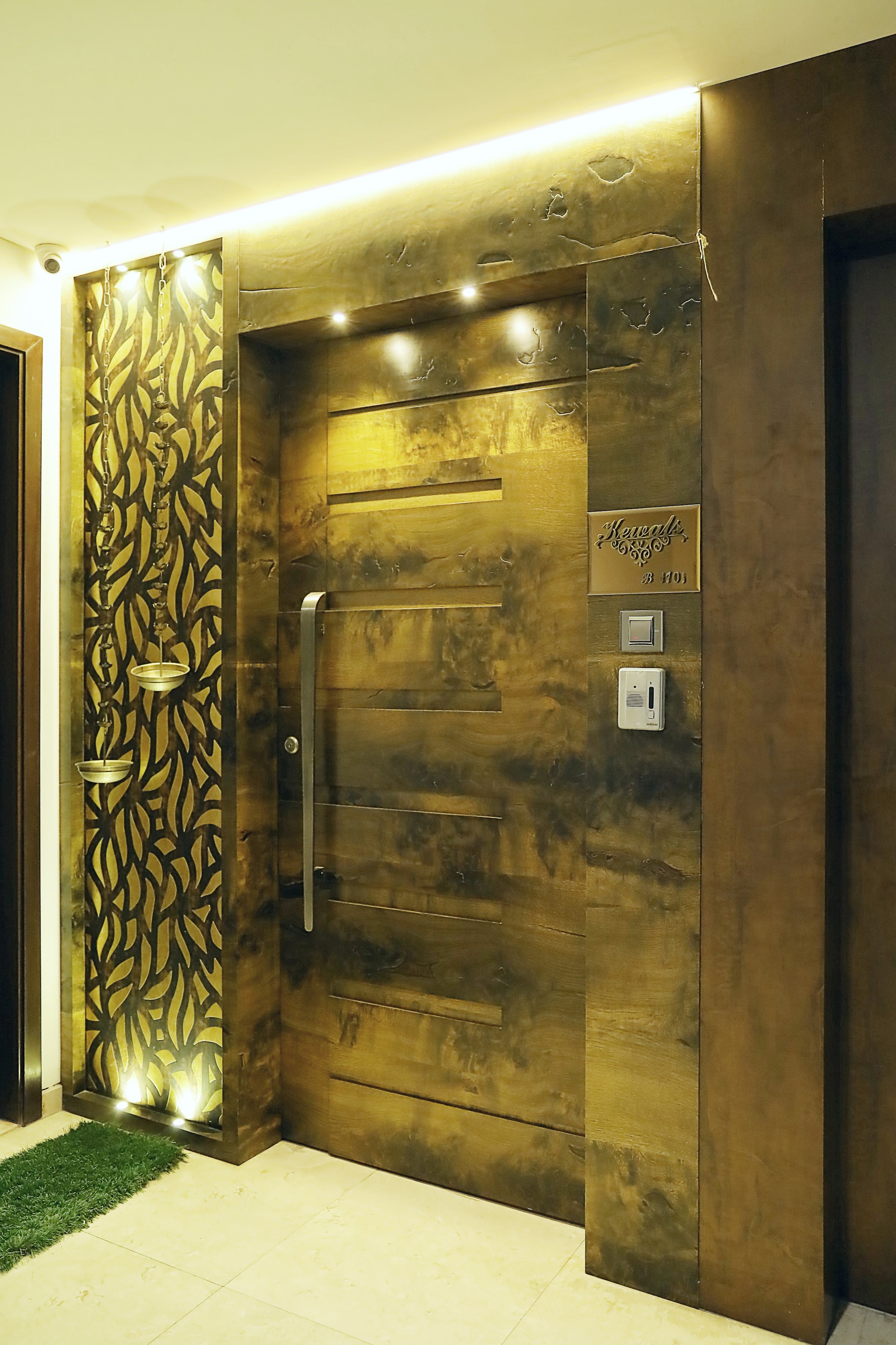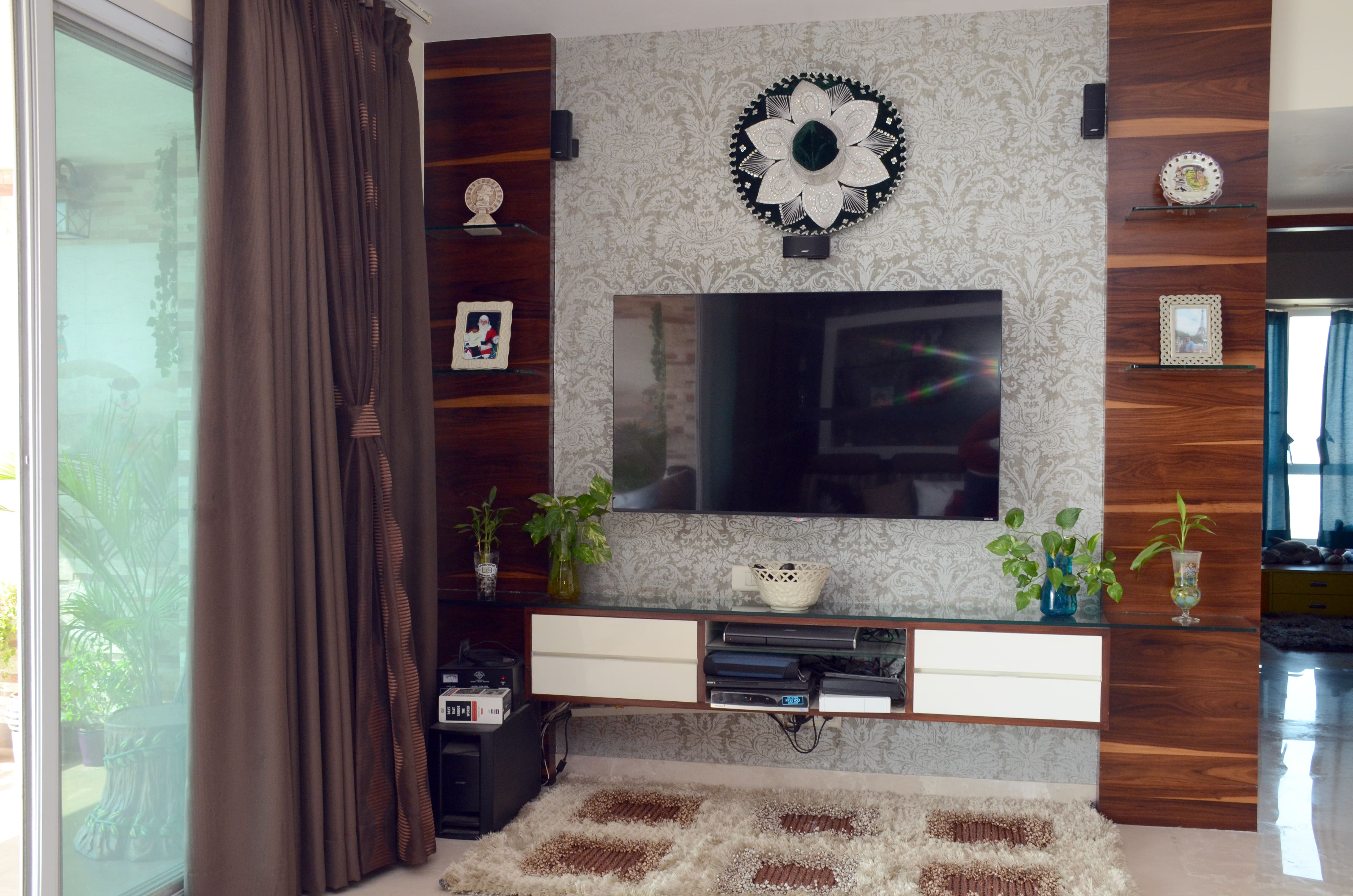 A fusion of modern & classic styles, this vintage-styled Home is composed of warm hues, wood veneers, brick & stone finish tiles, textured walls with warli art & brass idols.