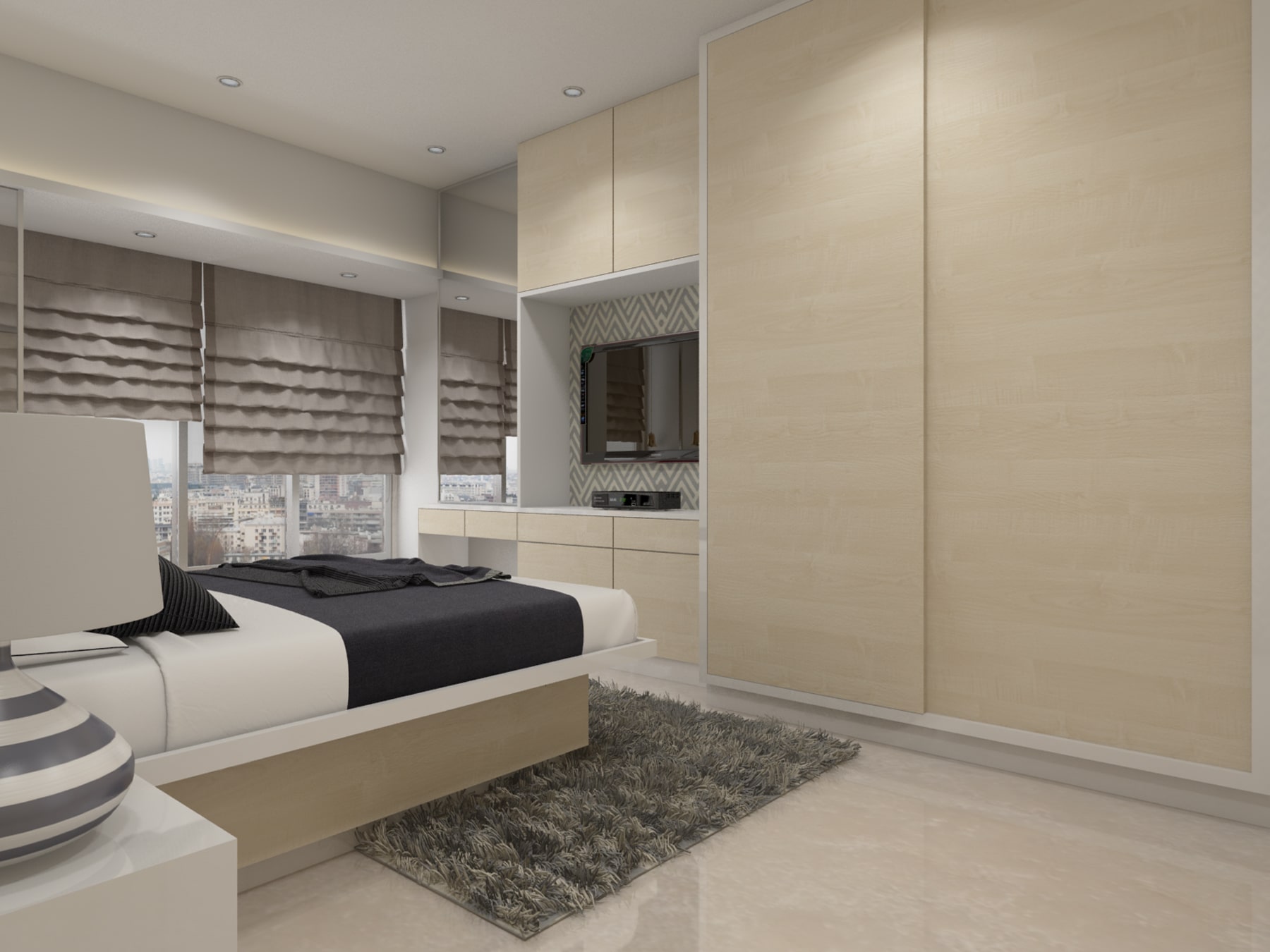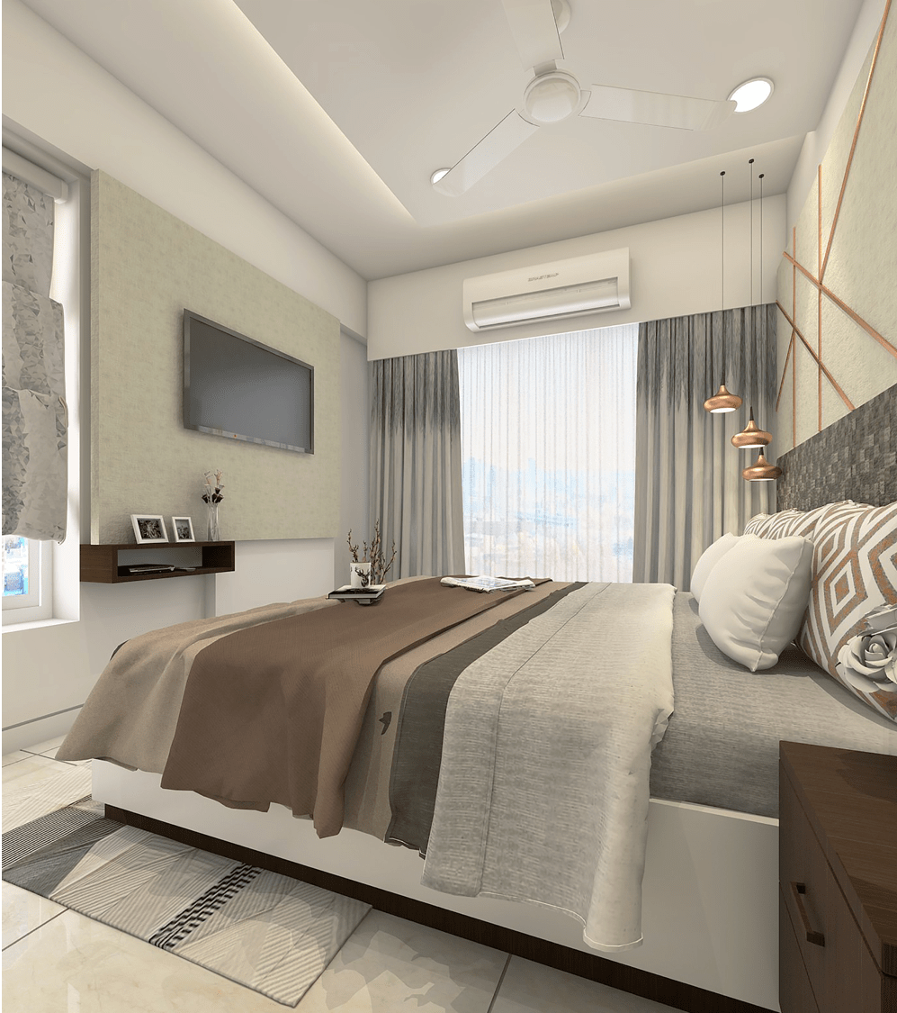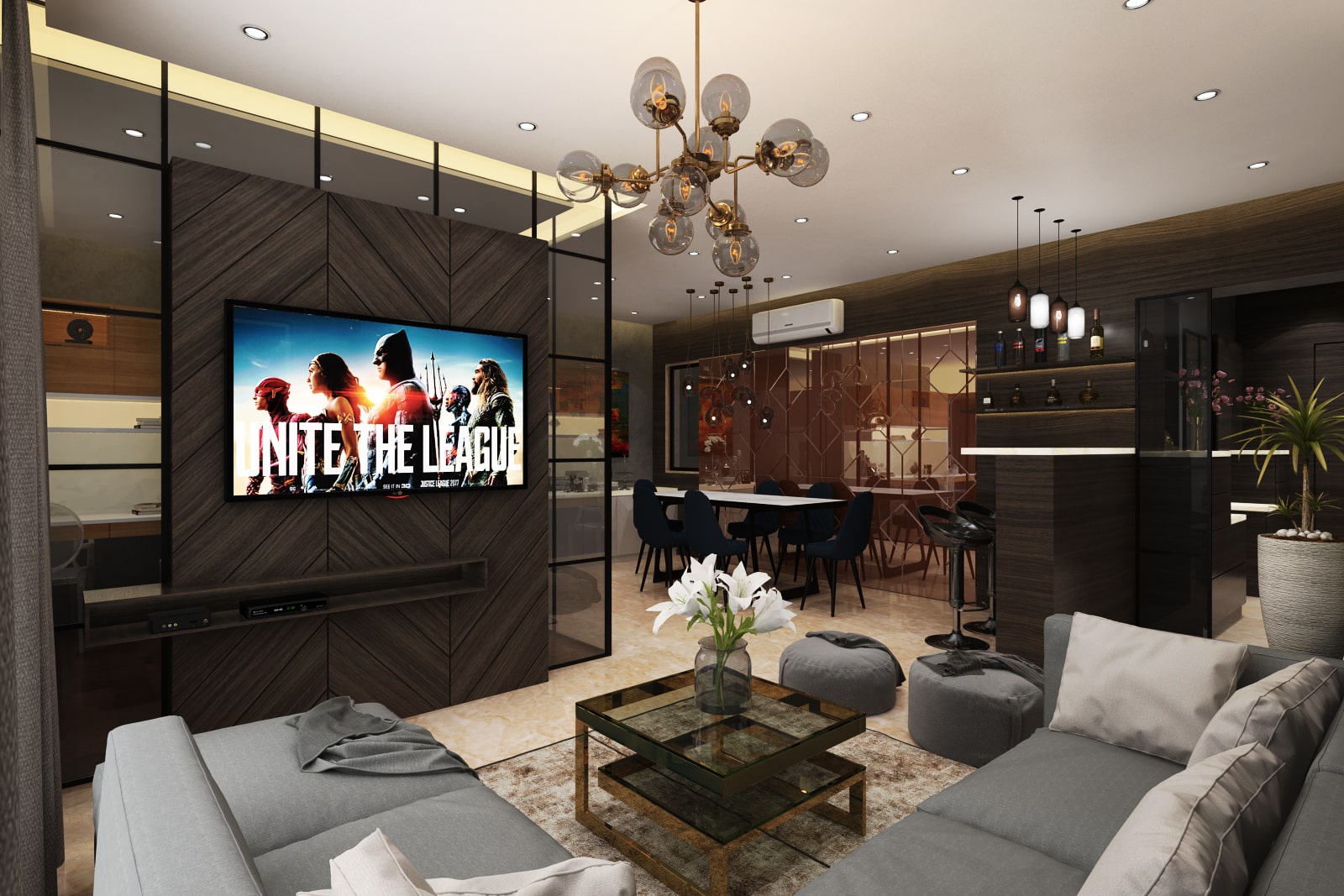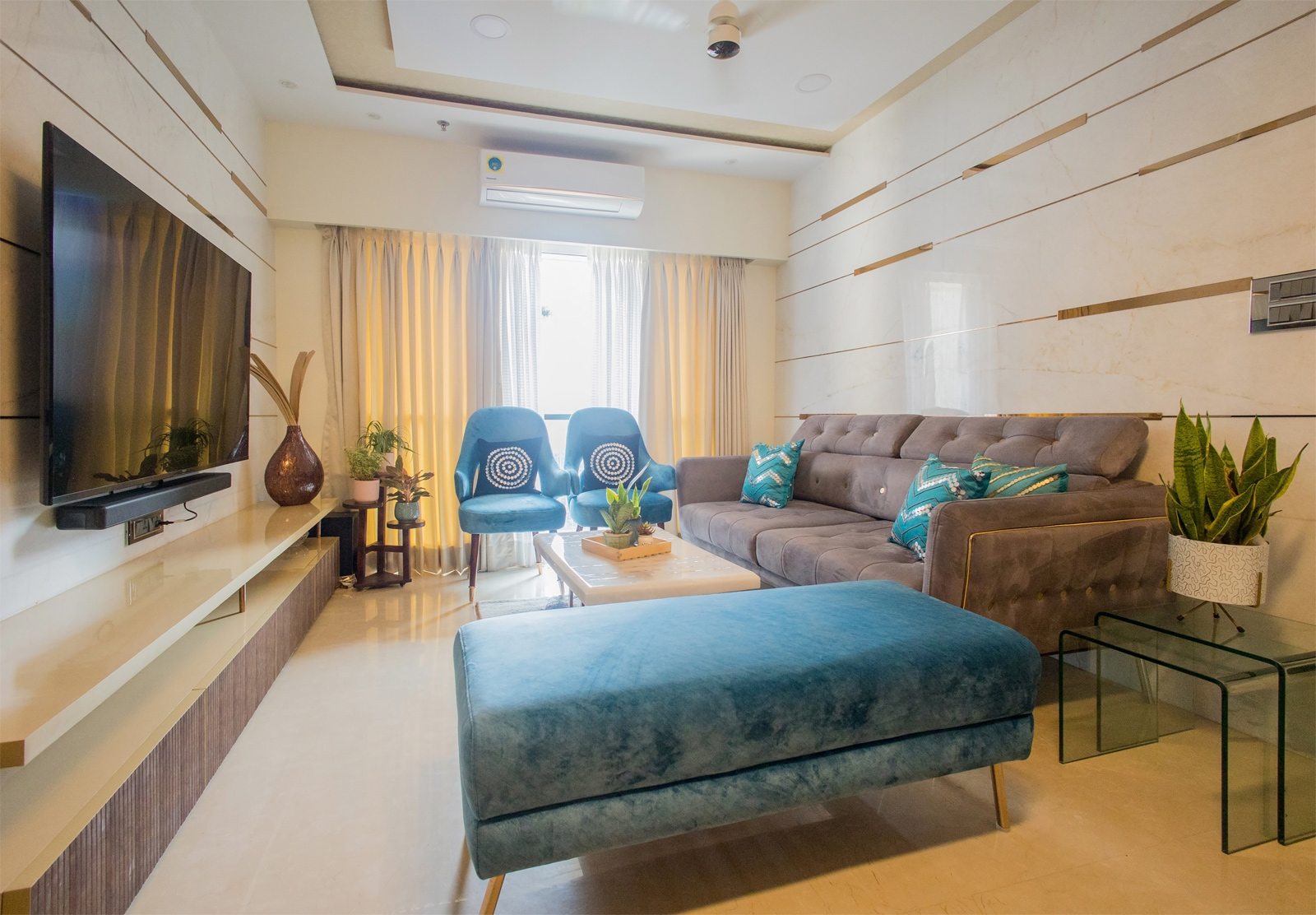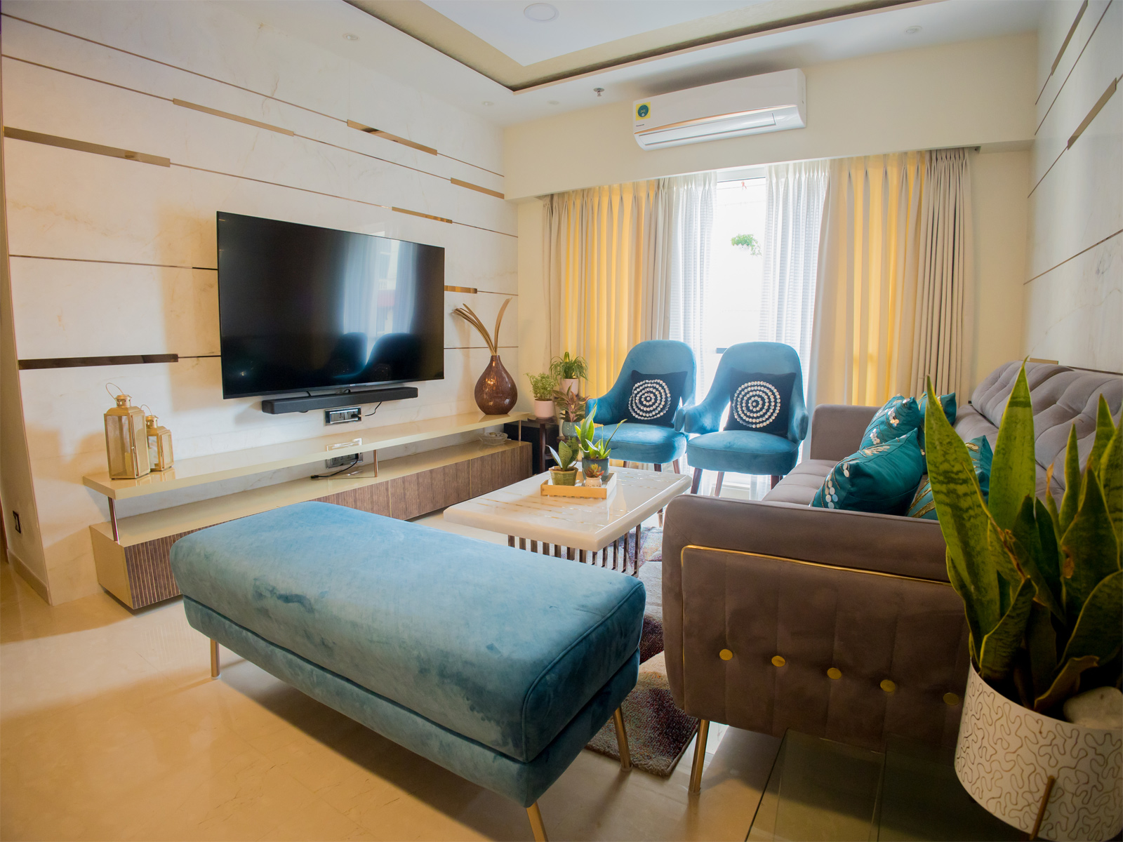 This state-of-the-art, futuristic apartment, masterfully designed with a modular kitchen & open spaces, allows in a lot of sunlight & ensures privacy.