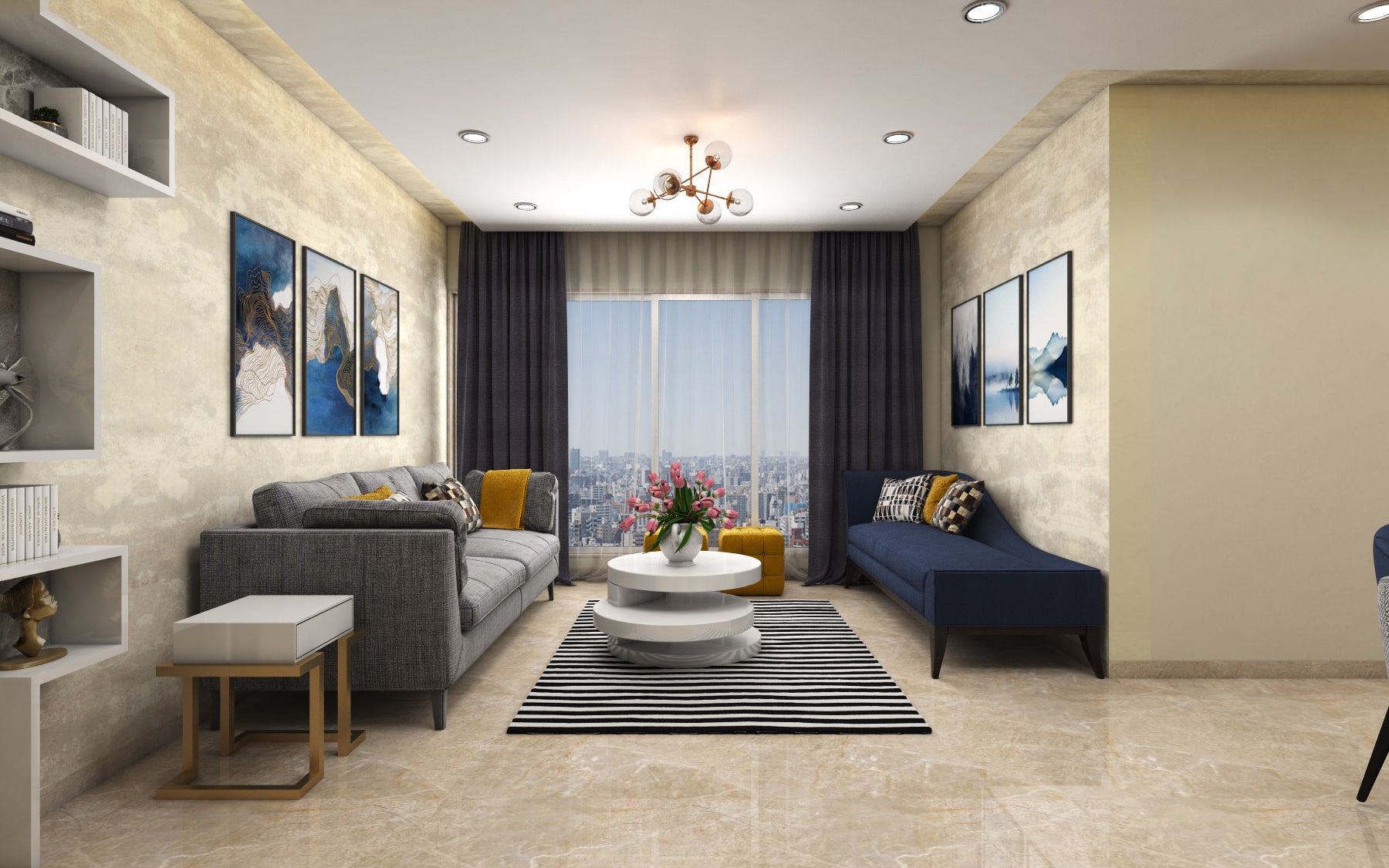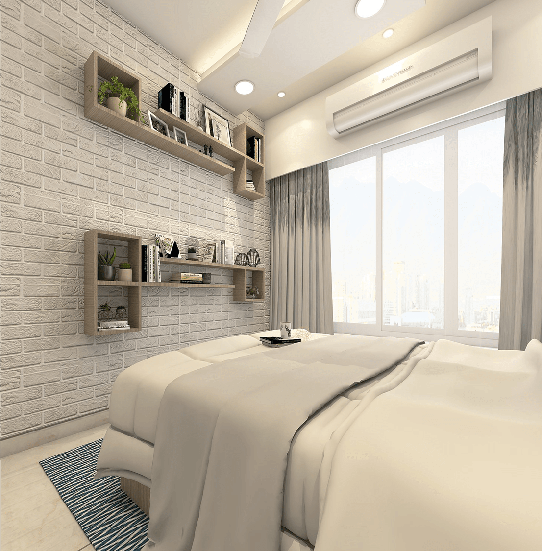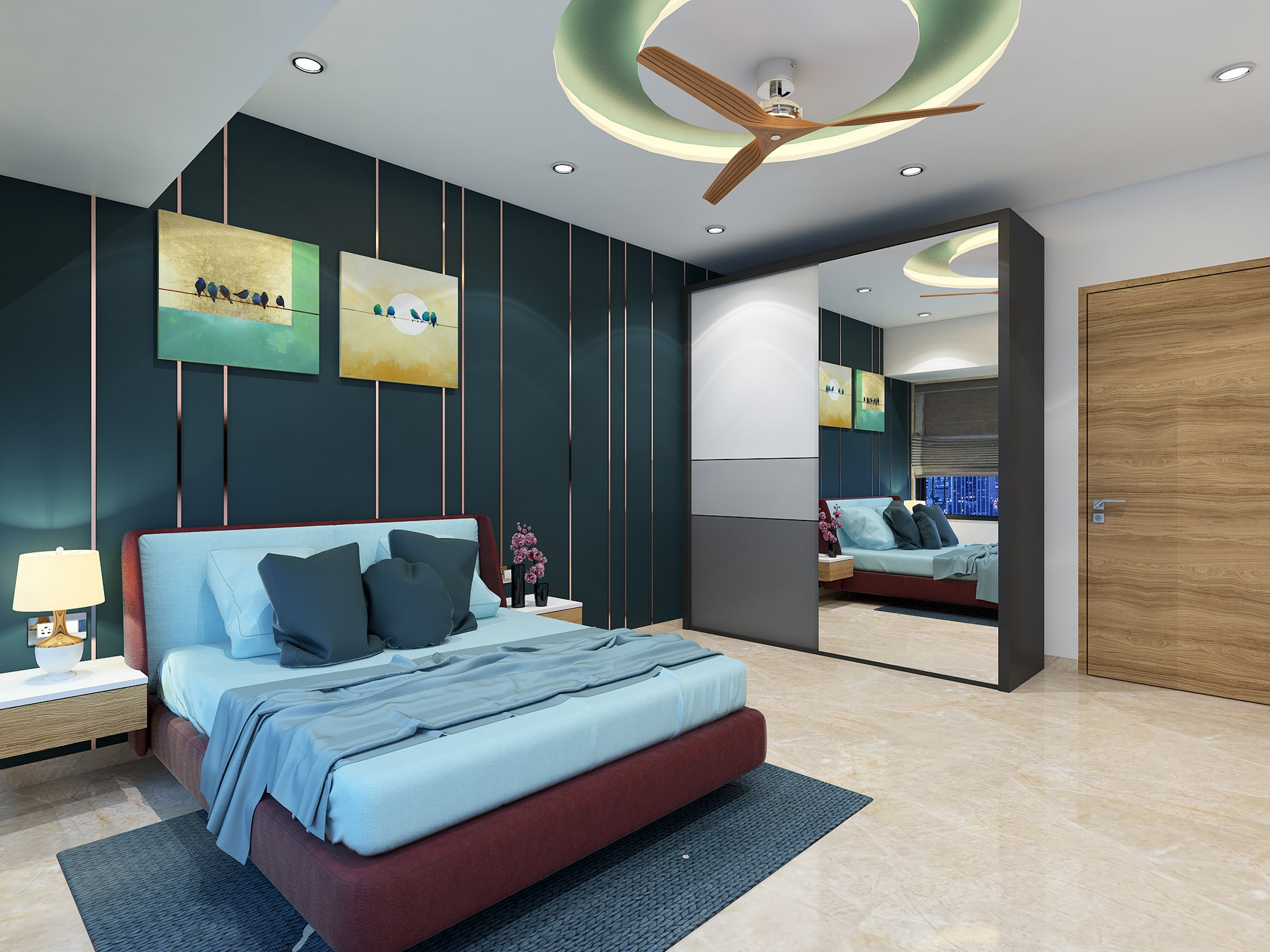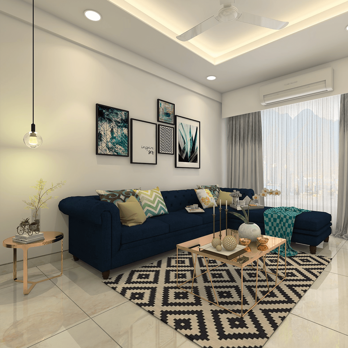 This Home is the very definition of a comfortable, refined modern home with white & blue hues. A thin wooden partition was used to enhance the space. (Rendered Image)