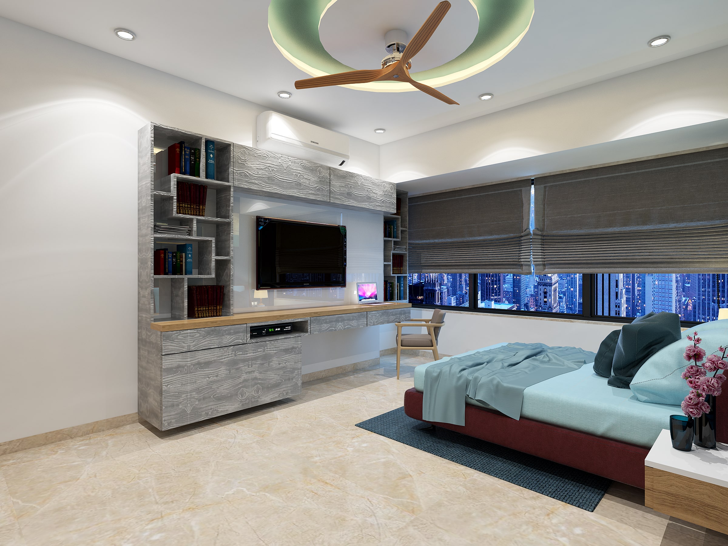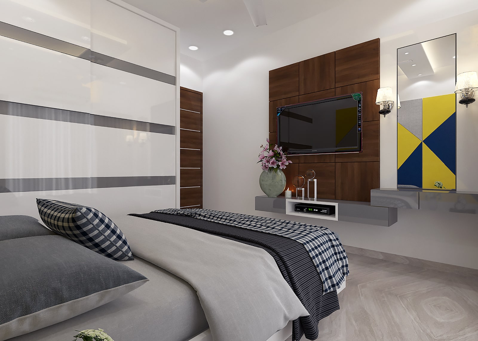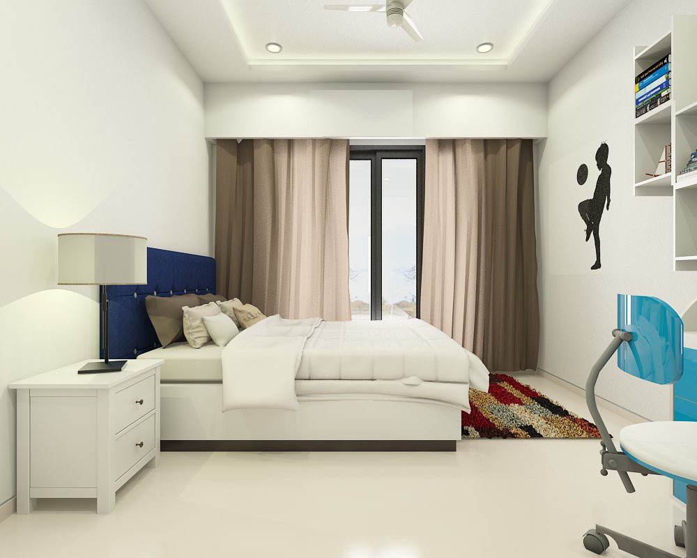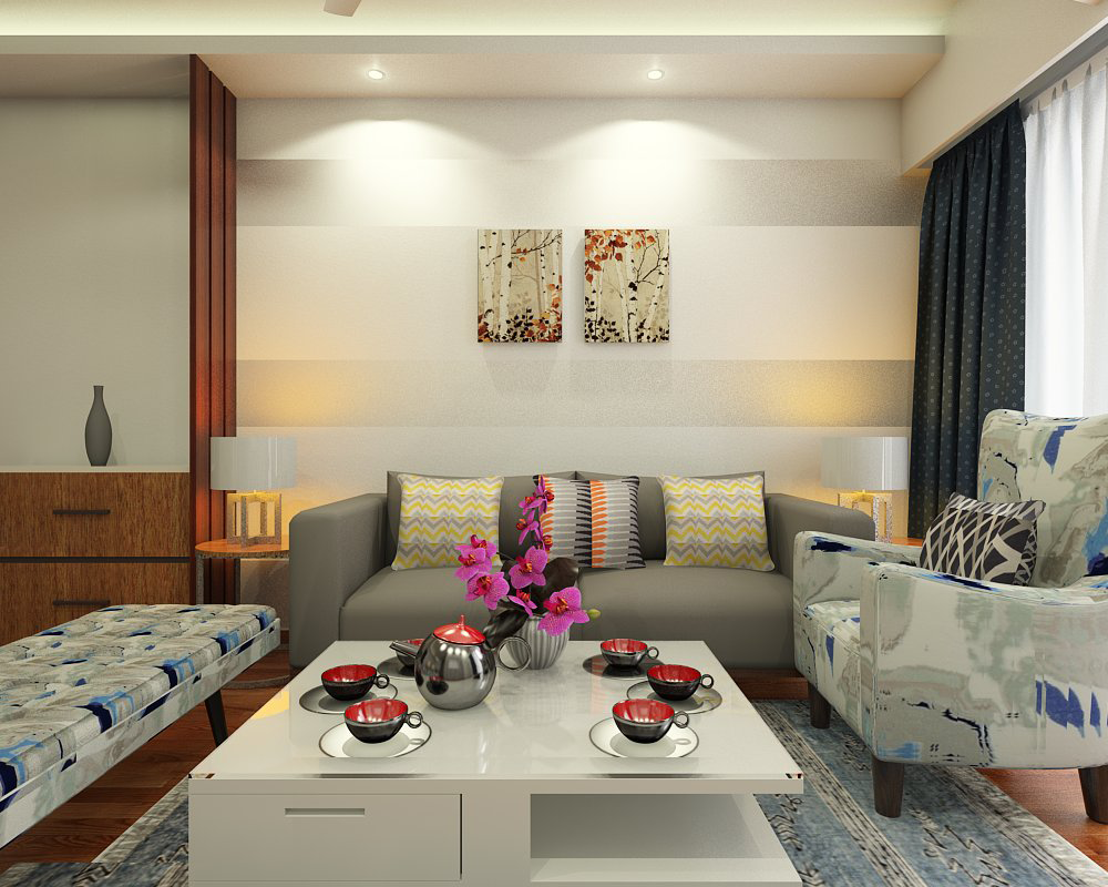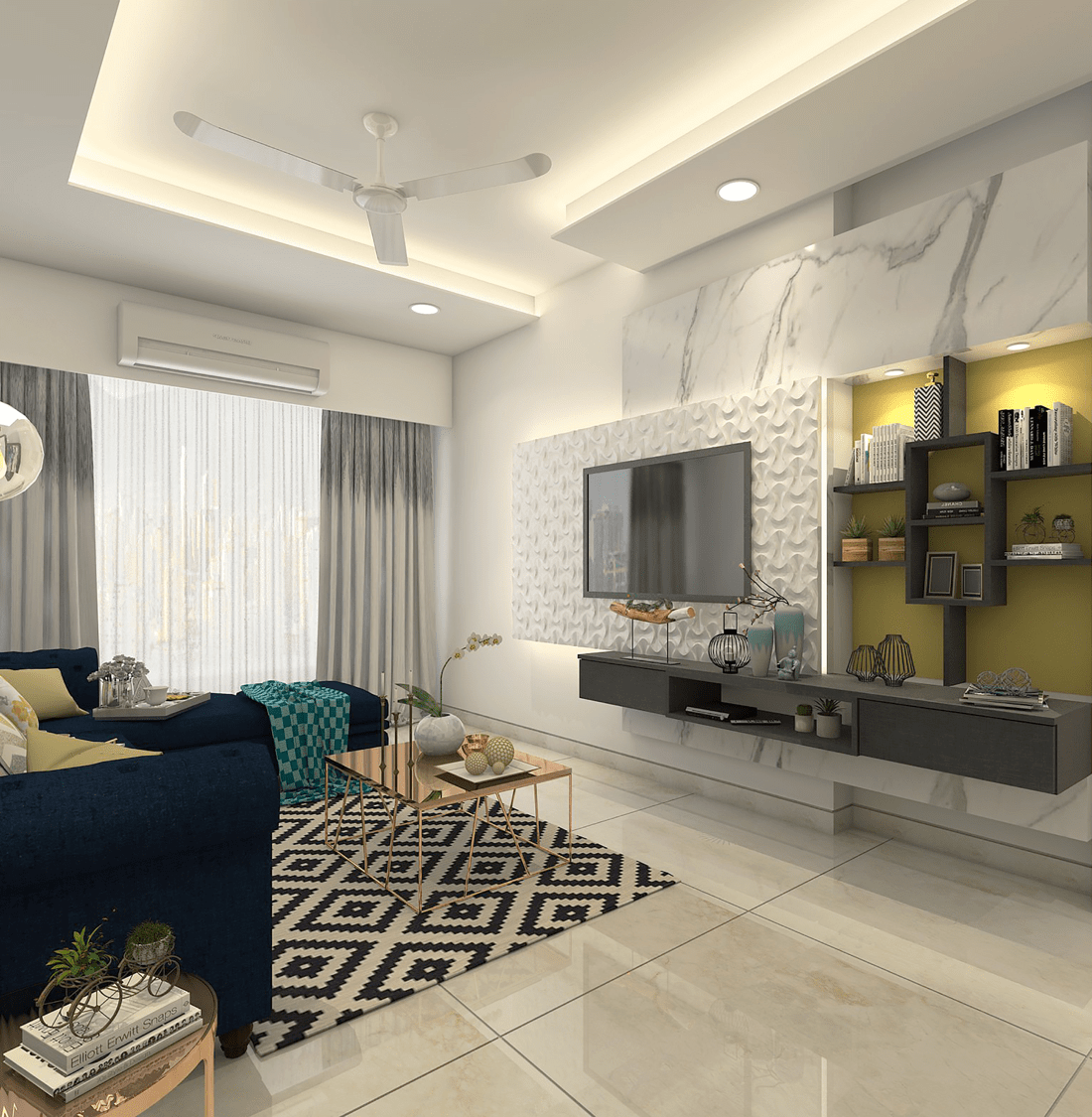This Home is the very definition of a comfortable, refined modern home with white & blue hues. A thin wooden partition was used to enhance the space. (Rendered Image)