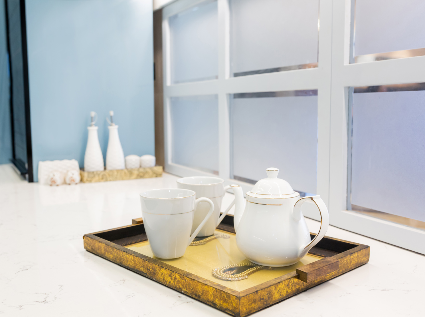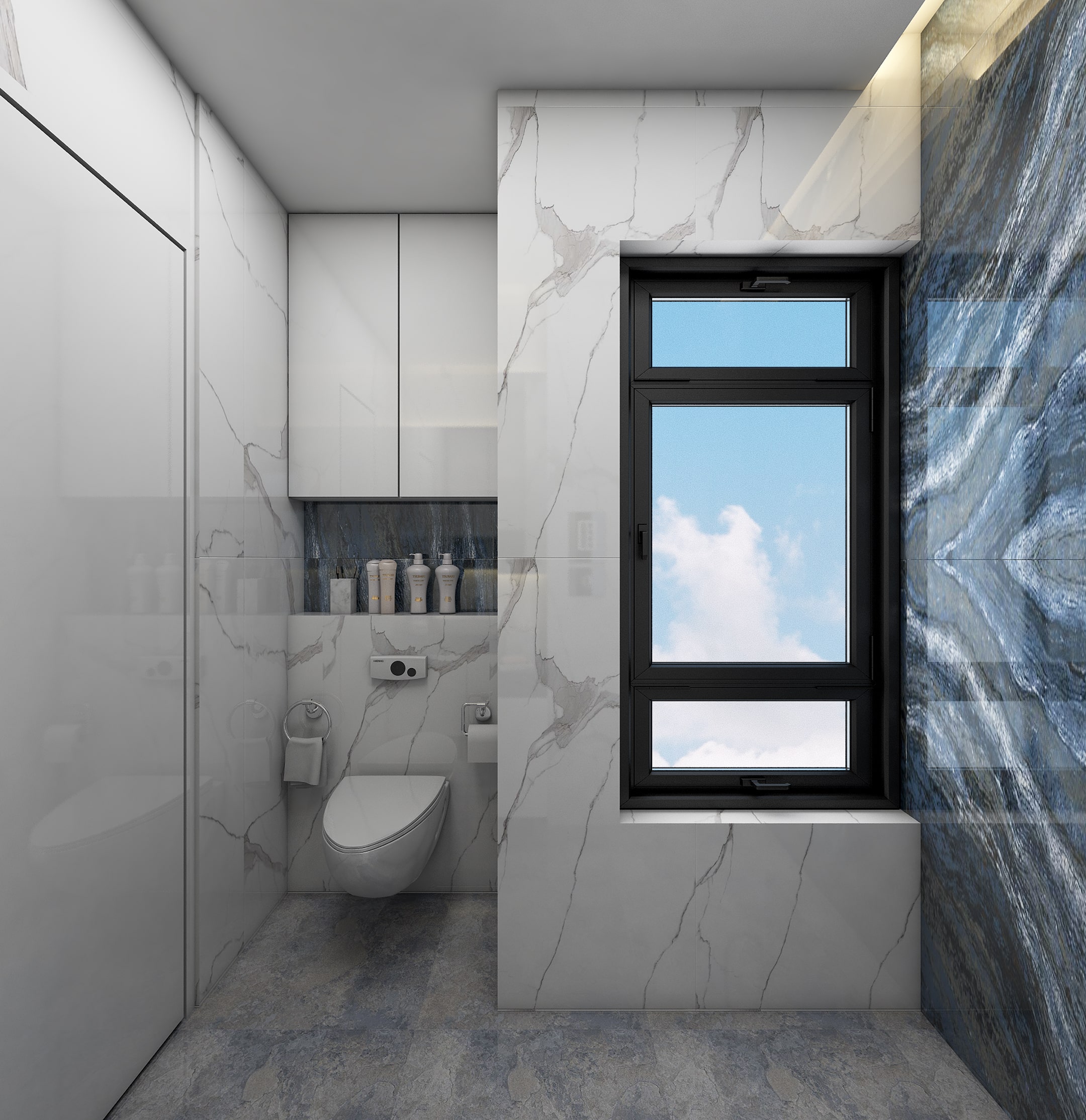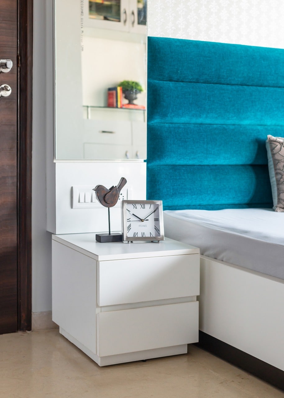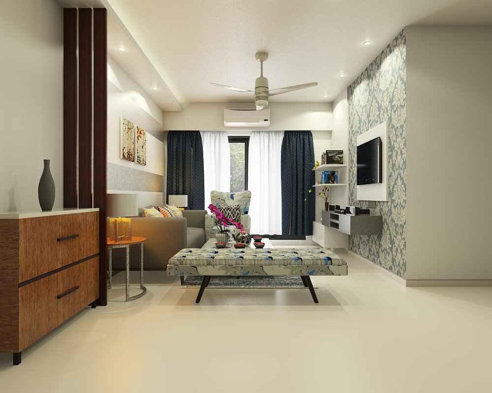 This Home is the very definition of a comfortable, refined modern home with white & blue hues. A thin wooden partition was used to enhance the space. (Rendered Image)