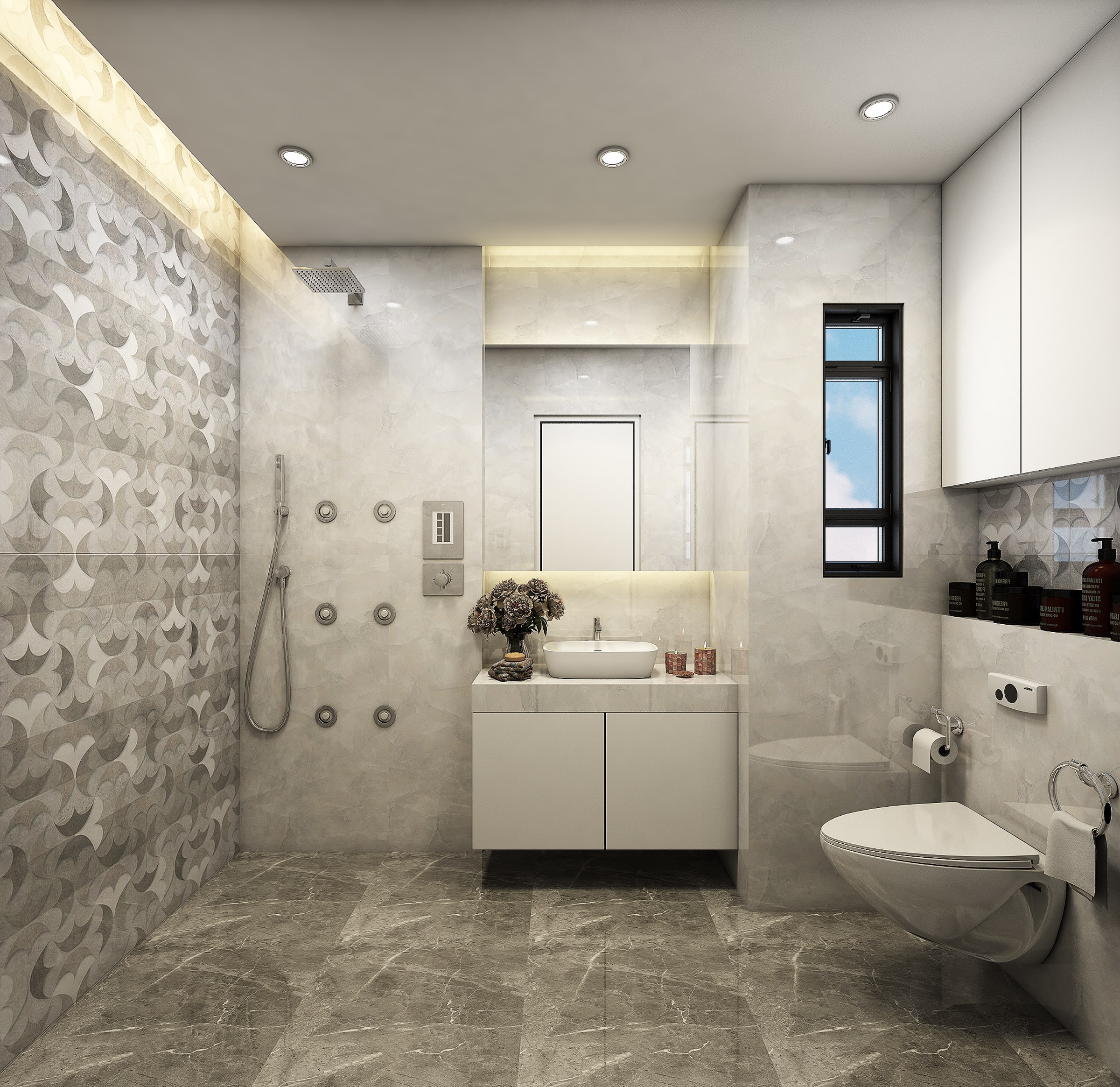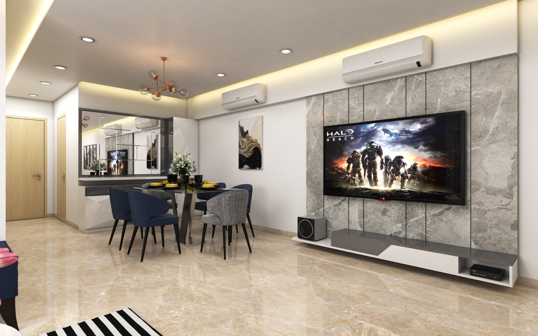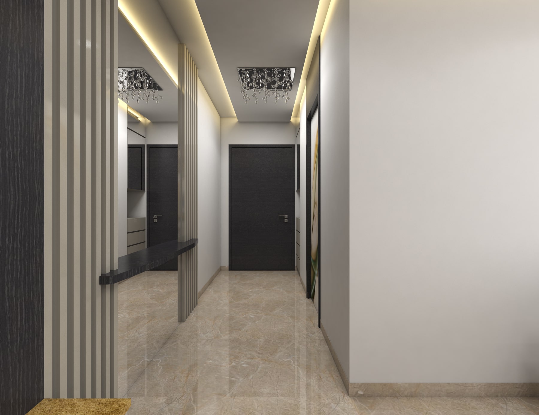 This breathtaking home with Italian Marble flooring, grey hues, monochrome palette & Callisto Elements customized furniture epitomizes luxury. (Rendered Image)