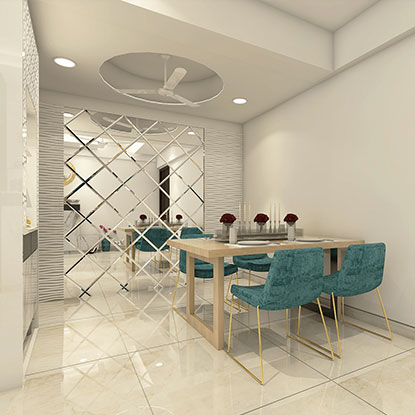This immaculate house has partition walls made of glass, making the home spacious, bright & airy. Insightful use of mirrors, glass & moldings constitute the highlights. (Rendered Image)